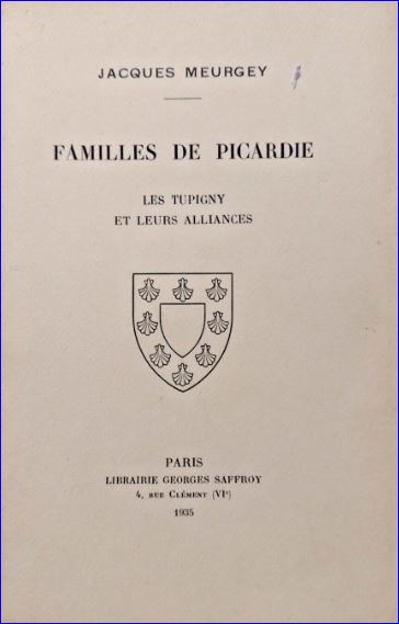 Fac-similé de la couverture de Familles de Picardie, Les Tupigny et leurs alliances, Jacques Meurgey,