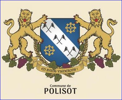 (2024) D'azur à la bande d'argent chargée de six fousseux [houes de vigneron] de sable passés deux à deux en trois sautoirs, accompagnée de deux roues de moulin d'or.