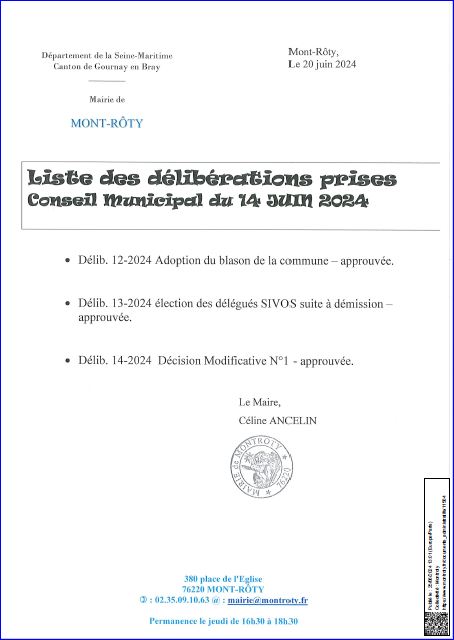 Liste des délibérations du 14 juin 2024.