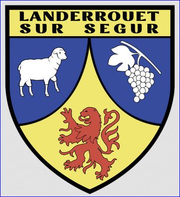 D'or au lion de gueules; chapé ployé d'azur chargé à dextre d'un agneau arrêté et contourné d'argent et à senestre d'une grappe de raisin tigée et feuillée du même; le tout sommé d'un comble d'or chargé des inscriptions « LANDERROUET » et « SUR SEGUR » en lettres capitales de sable, l'une au-dessus de l'autre.