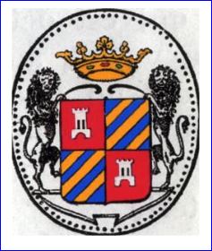 Écartelé: aux 1er et 4e de gueules à la tour d'argent ouverte, ajourée et maçonnée de sable, aux 2e et 3e d'or à trois barres d'azur.