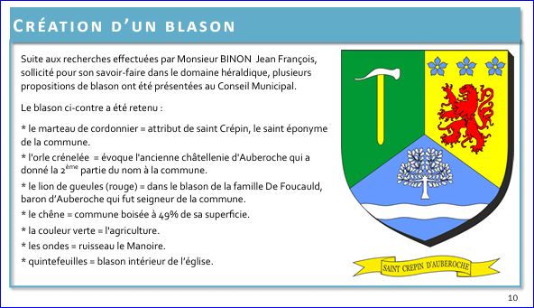 (2023) Tiercé en pairle renversé: au 1er de sinople au marteau de cordonnier contourné d'argent, emmanché d'or, au 2e d'or au lion de gueules accompagné de trois quintefeuilles d'azur rangées en chef, au 3e d'azur au chêne d'argent soutenu d'une divise du même.