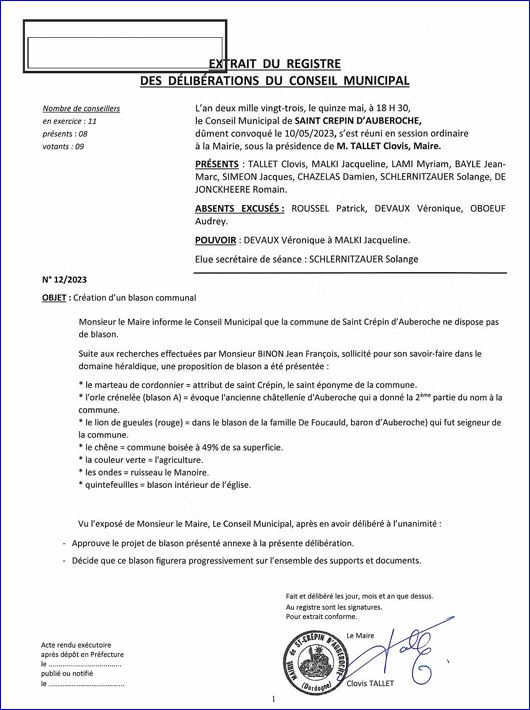 Extrait du registre des délibérations du Conseil Municipal du 15 mai 2024.