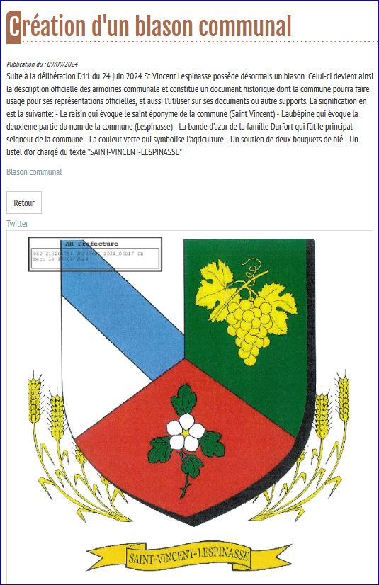 Blason sur le site de la commune, 2024.