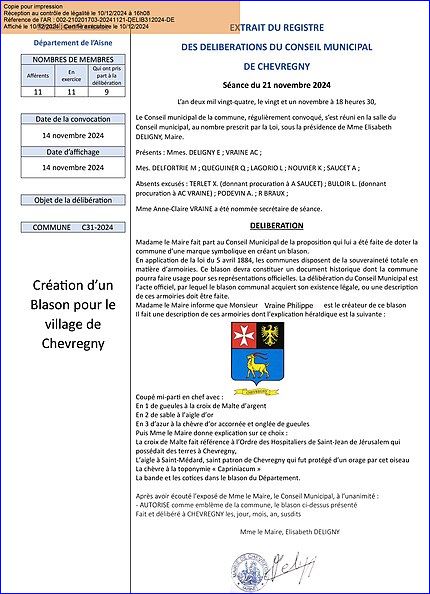 Extrait du registre des délibérations du Conseil Municipal du 21 novembre 2024.