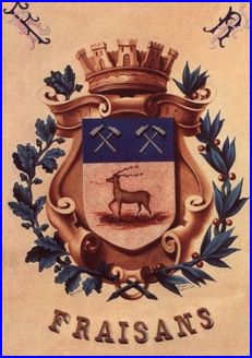 D'or au cerf passant sur une terrasse isolée parsemée de touffes d'herbes sèches, le tout au naturel; au chef d'azur chargé de quatre marteaux d'argent passés en sautoir deux à deux, les pannes affrotées.