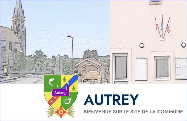 Écartelé: au 1er de sinople au poisson d'argent contourné et courbé en pal, au 2e d'or à la barre d'azur accompagnée de deux sapins de sinople, au 3e d'or à la barre de gueules chargée de trois alérions d'argent, au 4e de sinople au grêlier contourné d'argent; à la silhouette de l'abbaye Notre-Dame d'Autrey de pourpre au trait d'argent, surchargée de l'inscription « Autrey » du même, brochant en coeur sur le tout. brochant en coeur sur le tout.
