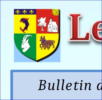 Écartelé: au 1er d'or dauphin d'azur, barbé, crêté, lorré, oreillé et peautré de gueules et au chef d'azur chargé de trois fleurs de lis d'or, au 2e de gueules à l'arbre d'argent à dextre et à la chapelle du même à senestre accompagnés d'un soleil d''or mouvant de l'angle senestre du chef, au 3e de sinople à la tête de bouquetin d'argent, au 4e d'or à la vache de tenné et son veau contourné du même brochant, ladite vache accornée, accolée et clarinée d'azur.