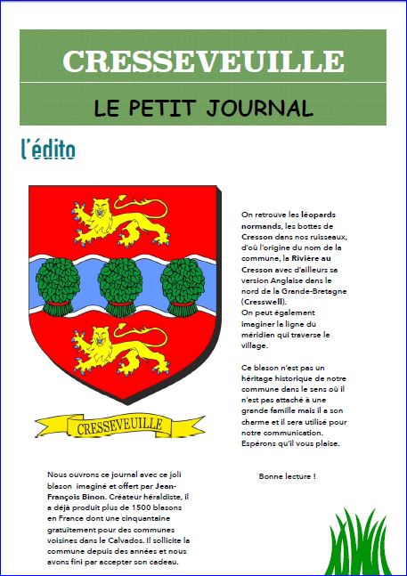 (2025) De gueules à la fasce ondée d'azur bordée d'argent, accompagnée de deux léopards d'or, armés et lampassés d'azur, à trois bottes de cresson de sinople, liées de gueules, rangées en fasce et brochant sur la fasce ondée.