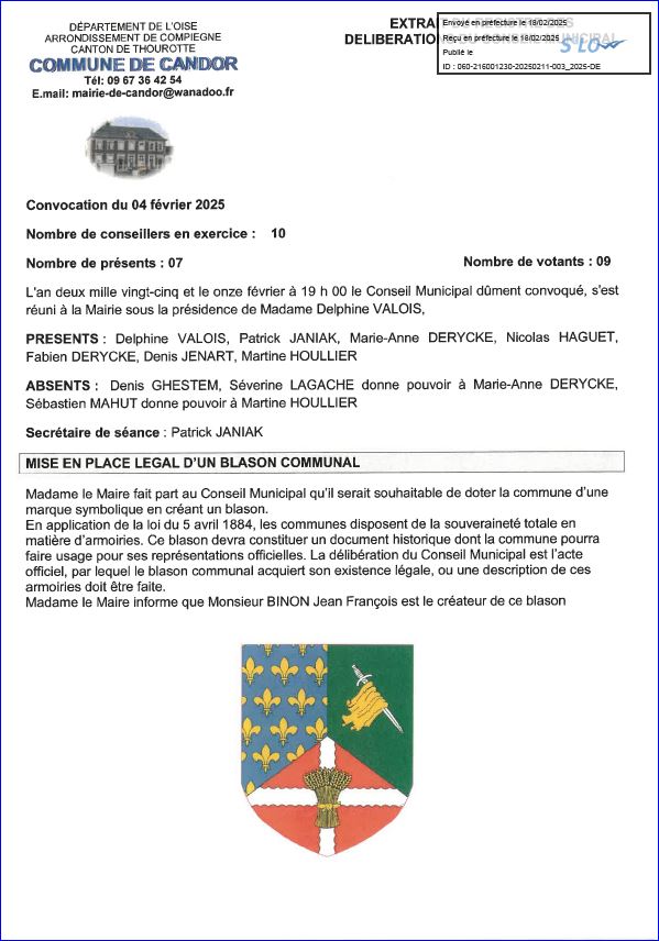 Extrait du registre des délibérations du Conseil Municipal du 11 février 2025 (1/2).