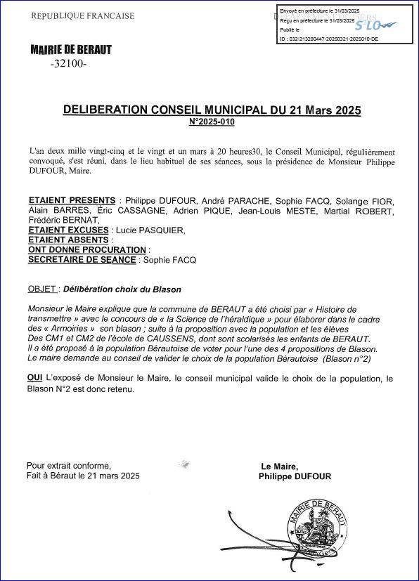 Extrait du registre des délibérations du Conseil Municipal du 21 mars 2025 (1/2).