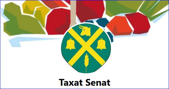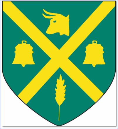 De sinople à l'étai d'or accompagné en chef d'une tête de vache, en flancs de deux cloches et en pointe d'un épi de blé, le tout du même.