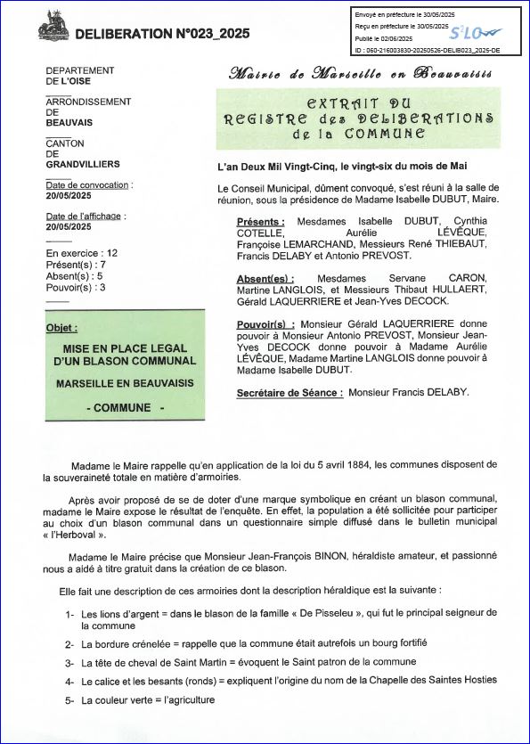 Extrait du registre des délibérations du Conseil Municipal du 26 mai 2025 (1/2).