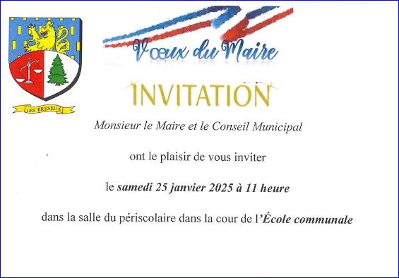 Carton d'invitation aux voeux du maire sur intramuros.org/les-breseux, 2025.