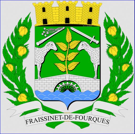 La branche de frêne traduit le nom de la commune qui signifie l'endroit où pousse le frêne ; chacune des feuilles rappelle les lieux habités, y compris ceux qui ont disparu aujourd'hui : Le chef-lieu Fraissinet, Clauzel, Fourques, l'Hom, Malbosc, Perjuret, Veigalier et Viallas.