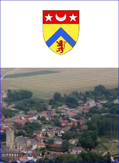 D'or au chevron d'azur accompagné en pointe d'un lion de gueules; au chef de gueules chargé d'un croissant d'argent accosté de deux étoiles du même.