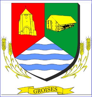 (2025) Tiercé en pairle renversé: au 1er de gueules à l'église Saint-Martin du lieu d'or, au 2e de sinople au lavoir du lieu d'or posé en perspective, au 3e d'argent à trois burelles ondées d'azur.