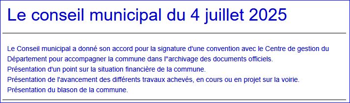 Résumé du compte-rendu du Conseil Municipal sur le site de la commune, 2025.