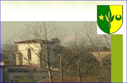 Parti de sinople et d'or, à la branche de trois feuilles de l'un en l'autre, brochant sur la partition, adextrée d'une étoile d'or et senestrée d'un croissant de sinople.