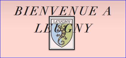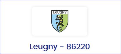 Parti d'azur et de sinople, à la salamandre tachetée [Salamandra salamandra] au naturel brochant sur la partition; le tout sommé d'un comble d'argent chargé de l'inscription « LEUGNY » en lettres capitales de sable.