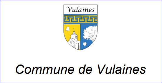 Coupé haussé: au 1er re-coupé au I d'argent à l'inscription « Vulaines » en lettres de sable, au II d'azur à la jumelle d'or potencée et contre-potencée intérieurement, au 2e parti, au I d'or à l'église d'argent mouvant de la pointe et adextrée en chef d'une cloche du même, au II d'azur à l'arbre d'argent mouvant du flanc senestre et adextrée en pointe d'une mirabelle du même.