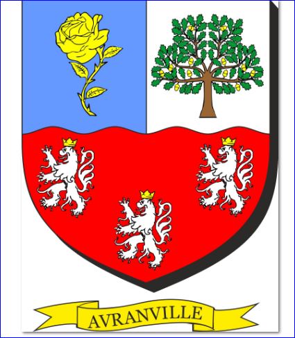 (2025) Coupé ondé: au 1er parti au I d'azur à la rose de jardin tigée feuillée d'or, au II d’argent au chêne de tenné, feuillé de sinople et fruité d'or, au 2e de gueules à trois lionceaux d'argent couronnés d'or.