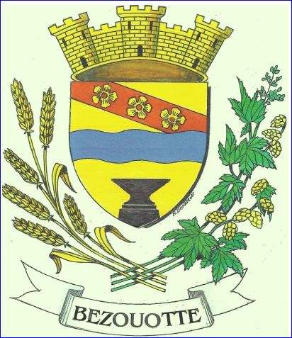 D'or à la fasce ondée d'azur accompagnée en chef d'une cotice de gueules chargée de trois quintefeuilles du champ et en pointe d'une enclume de sable sur son socle du même mouvant de la pointe.