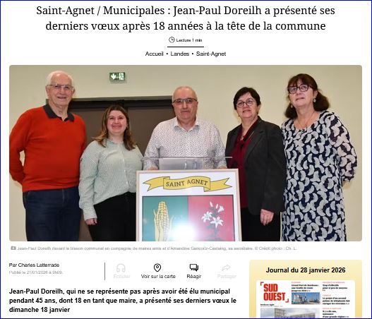 Article de presse Sud-Ouest du 21 janvier 2026 (site du journal).