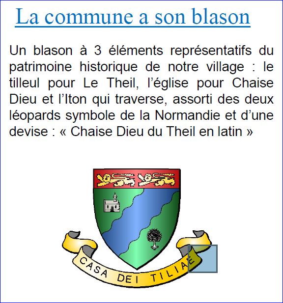 (2023) De sinople à la barre ondée cousue d'azur, accompagnée en chef d'une église d'argent et en pointe d'un tilleul d'argent; au comble cousu de gueules chargé de deux léopards d'or.