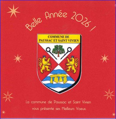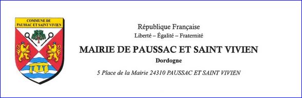 Écartelé en sautoir: au 1er d'argent au chêne coupé au naturel accosté de deux crosses de sable, posées en bande a dextre et en barre et contournée à senestre, aux 2e et 3e de gueules au lion d'or couronné d'azur, les deux lions affrontés, au 4e d'argent à trois fasces ondées d'azur et au dolmen d'or brochant sur les fasces; au chef d'or chargé des inscriptions « COMMUNE DE » et « PAUSSAC ET SAINT VIVIEN », en lettres capitales de sable, l'une au dessus-de l'autre.