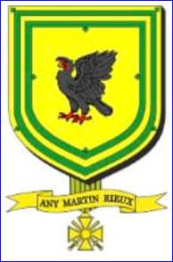 D'or à l'aigle essorante de sable, becquée et membrée de gueules; au double trescheur fleurdelisé contre-fleurdelisé de sinople.
