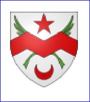 D'argent à deux palmes de sinople passées en sautoir, accompagnées en chef d'une étoile et en pointe d'un croissant le tout de gueules, à la fasce vivrée de deux pièces de gueules brochant sur le tout.