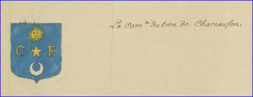 D'azur au soleil d'or en chef, à l'étoile du même en coeur, au croissant d'argent en pointe, l'étoile accostée des lettres capitales C et F d'or.