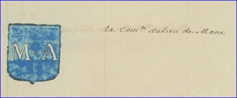 D'azur aux lettres capitales M et A d'argent, séparées par un point [besant très réduit] d'or.