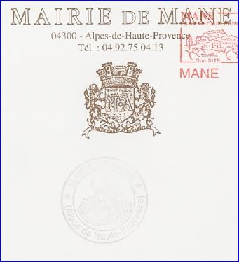 Devise: « que Mane soit et demeure ».