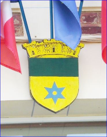 Blason sur la façade de la mairie.