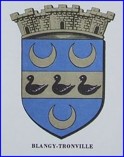 (1971) D'azur à la fasce d'or chargée de trois merlettes de sable, accompagnée de trois croissants d'or.