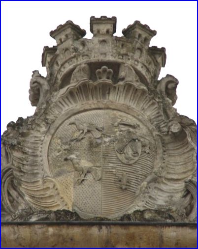 Ancien blason, "aux corbeaux", au fronton de la Porte d'Honneur,