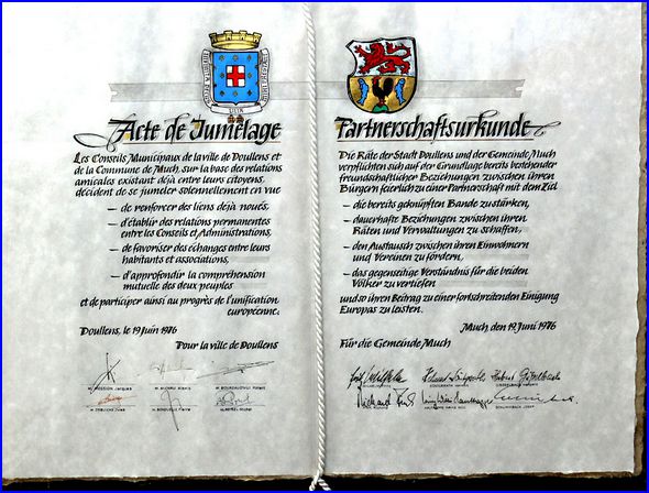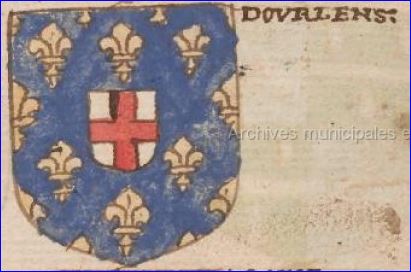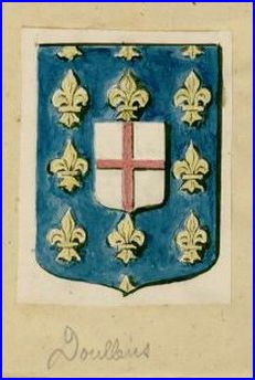(1369) D'azur semé de fleurs de lis d'or; à l'écusson d'argent chargé d'une croix de gueules, brochant en abîme.