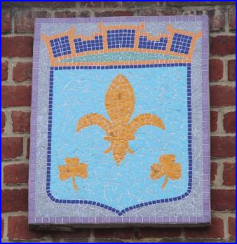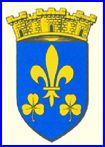 (1350) D'azur à la fleur de lis d'or accompagnée en pointe de deux trèfles du même.