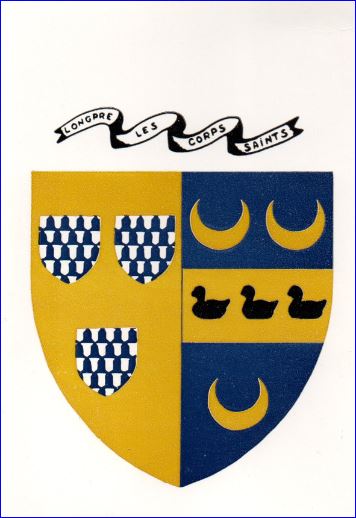 Parti: au 1er d'or à trois écussons de vair, au 2e d'azur à la fasce d'or chargée de trois merlettes de sable et accompagnée de trois croissants d'or.