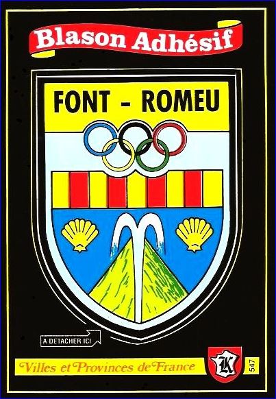 D'azur à la montagne de sinople, à la source d'argent jaillissant de la pointe et brochant sur le tout, accompagnée de deux coquilles renversées d'or en chef ; au chef d'or à quatre pals de gueules.