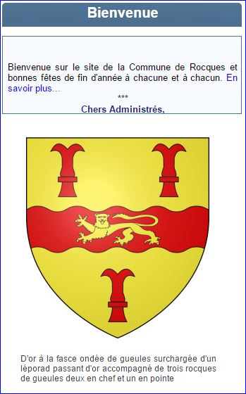 (1990) D'or à la fasce ondée de gueules chargée d'un léopard du champ et accompagnée de trois rocs d'échiquier de gueules.