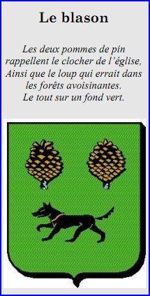 De sinople au loup de sable, surmonté de deux pommes de pin d'or.