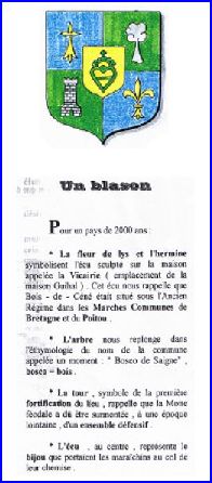 Écartelé: au 1er d'azur à la moucheture d'hermine d'or, au 2e de sinople à l'arbre d'argent, au 3e de sinople à la tour d'argent, maçonnée de sable et ouverte du champ, au 4e d'azur à la fleur de lis d'or; sur le tout, d'or au coeur vidé, couronné et croiseté de sinople (emblème des maraîchins).