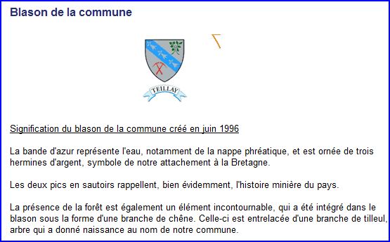 (1996) D'argent à la bande d'azur chargée de trois mouchetures d'hermine du champ, accompagnée en chef d'une branche de tilleul de sinople passée en sautoir avec une branche de chêne du même et en pointe de deux pics de mineur de gueules passés en sautoir.