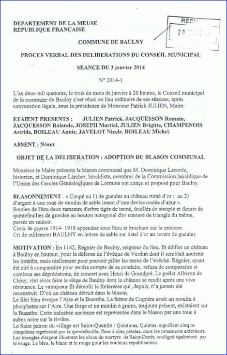 Délibération du Conseil Municipal du 3 janvier 2014 (1/2).