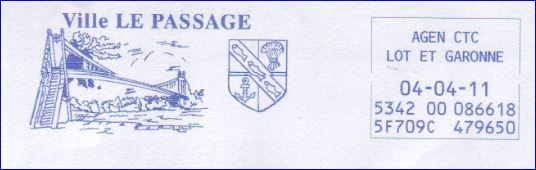 Écartelé: aux 1er et 4e d'azur plain, au 2e de gueules à la gerbe d'or, au 3e de gueules à l'ancre d'or; à la bande d'argent chargée de trois aloses [poissons] de sable brochant sur l'écartelé.