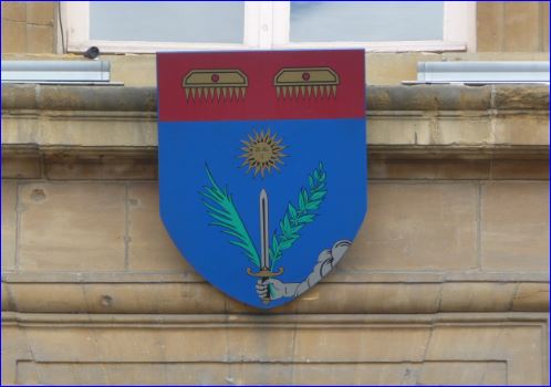 Blason sur la façade de la mairie.