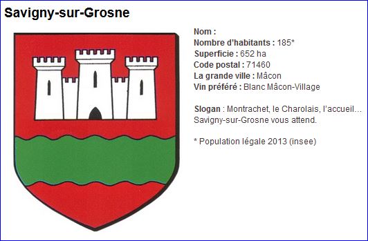 Le château représente le château féodal situé au lieu dit "Notre Dame" et la fasce ondée symbolise la Grosne, rivière au bas de la commune.